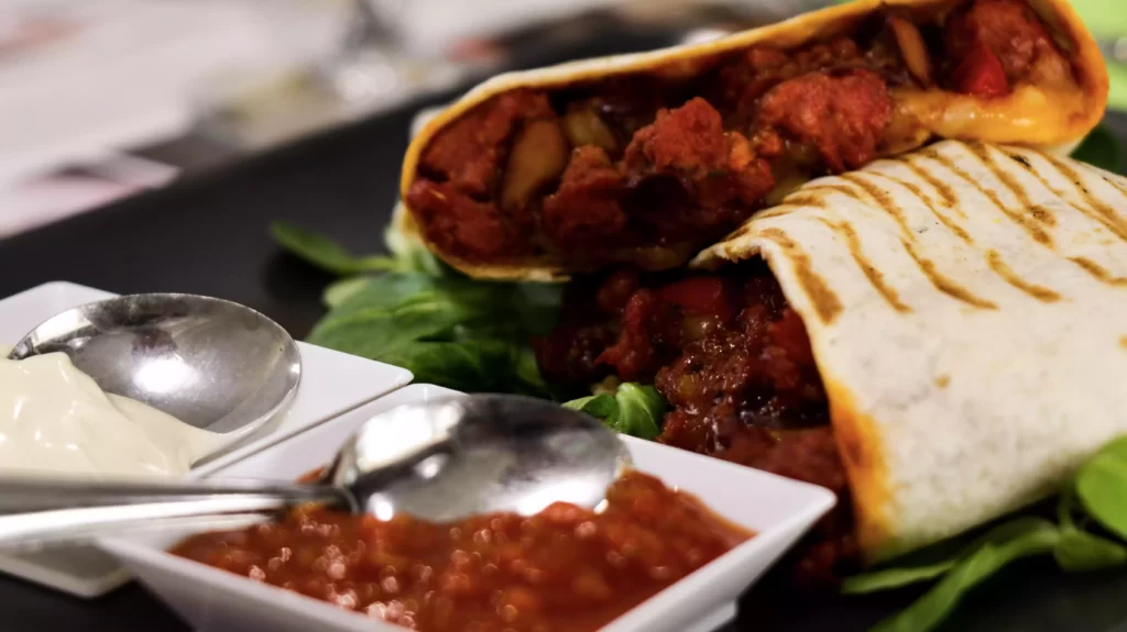 Tortillas di mais, carne di manzo chili, cipolle, peperoni, salsa tex mex, fagioli neri, cheddar